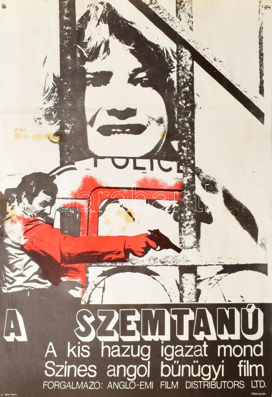 1970 A szemtanú. Színes angol bűnügyi film. Filmplakát, foltos, kis sz... https://www.darabanth.com/de/514-Gemalde-Plakat-ex-libris-Auktion/516.0/Gemalde-und-Grafiken/Plakat~7/1970-A-szemtanu-Szines-angol-bunugyi-film-Filmplakat-foltos-kis-szakadassal-56x39-cm~II3414519