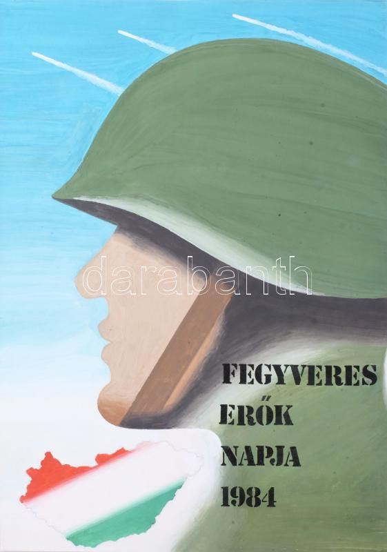 Darvas Árpád: Fegyveres Erők Napja 1984 plakátterv. Akvarell, papír, 3... https://www.darabanth.com/de/514-Gemalde-Plakat-ex-libris-Auktion/516.0/Gemalde-und-Grafiken/Plakat~7/Darvas-Arpad-Fegyveres-Erok-Napja-1984-plakatterv-Akvarell-papir-35x26-cm-3Cbr-3E~II3477045