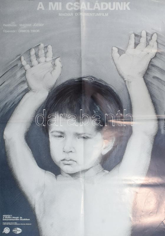 Fekete István (1956-): Mi családunk, 1985. Magyar dokumentumfilm plakát, ofszet, papír, jelzett a plakáton, Offset és Játékkártya Nyomda, hajtásnyomokkal, 81x56,5 cm