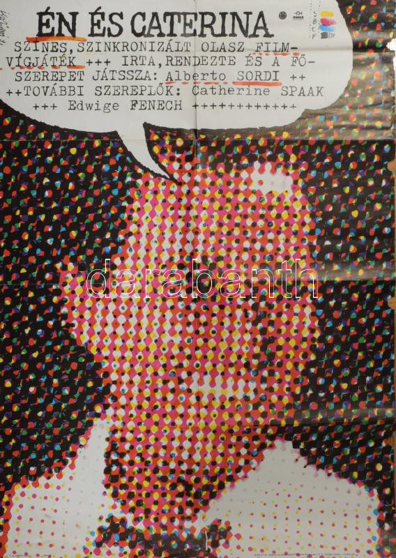 Kulinyi István (1945- ): Én és Caterina, 1982. Filmplakát, ofszet, papír, jelzett a plakáton, Bp., Offset és Játékkártya Ny., 2300 pld., hajtva, szakadásokkal, lapszéli sérülésekkel, 82x56,5 cm