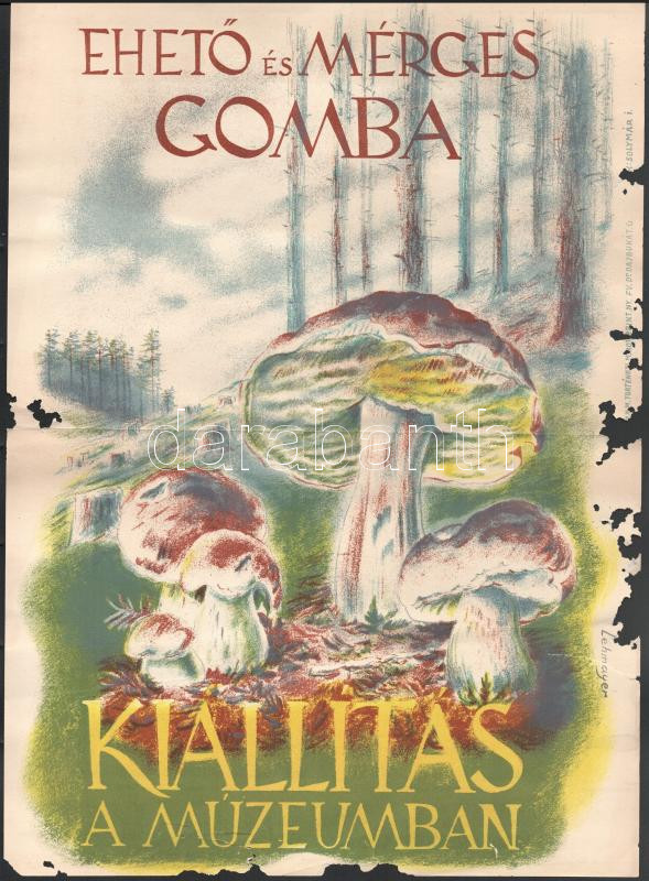 Lehmayer Ferenc (1909-1979): Ehető és mérges gomba, kiállítás a múzeum... https://www.darabanth.com/de/514-Gemalde-Plakat-ex-libris-Auktion/516.0/Gemalde-und-Grafiken/Plakat~7/Lehmayer-Ferenc-1909-1979-Eheto-es-merges-gomba-kiallitas-a-muzeumban-plakat-szakadaso~II3468256