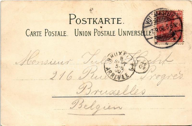 1900 Volmarstein in Wetter, view. Gustav Thun. With glued photo. Art Nouveau, floral, litho (EK)