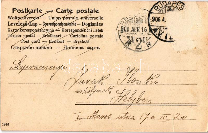 1906 Húsvéti üdvözlet / Easter greeting art postcard, ladies with egg, rabbits and sheep. Art Nouveau, litho (Rb)
