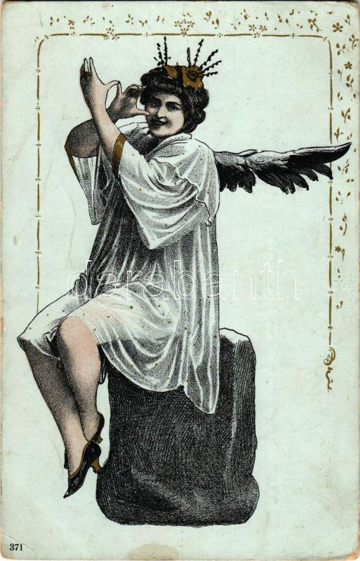 Angyalos üdvözlőlap / Christmas greeting art postcard with angel. litho (gyűrődés / crease)