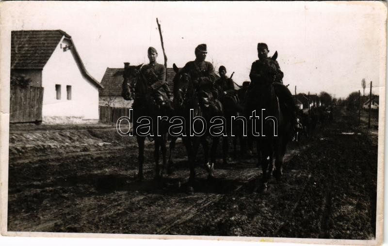 Magyar katonák lóháton / WWII Hungarian military, group of soldiers on horseback. photo (vágott / cut)