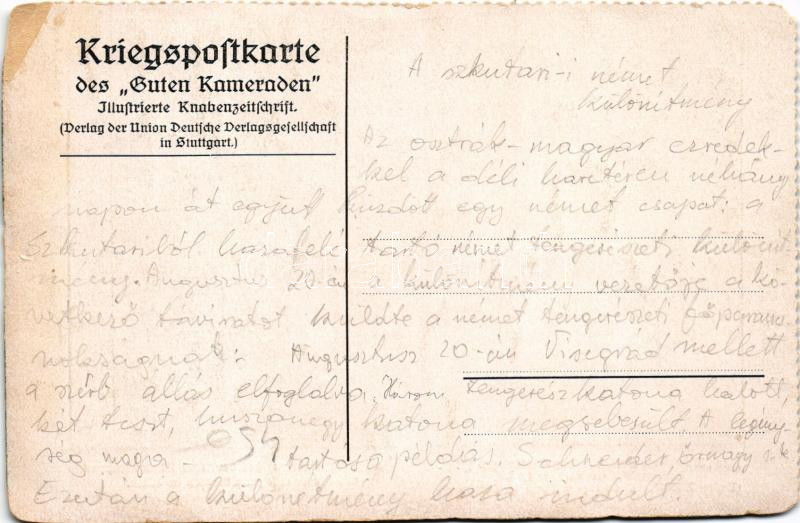Verbrüderung der deutschen Skutaritruppen mit österreichischen Soldaten in Wien. Kriegspostkarte des "Guten Kameraden". Aus "Illustrierte Geschichte des Weltkrieges 1914" / WWI German and K.u.K. military, troops from Shkodra (Scutari) (b)