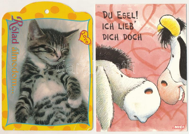 21 db MODERN motívum képeslap: poén, reklám, humor, rajzfilm; vegyes minőségben