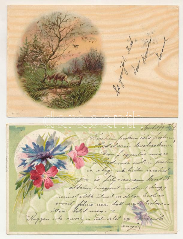2 db RÉGI (1905 előtti) litho művészlap / 2 pre-1905 litho art postcards