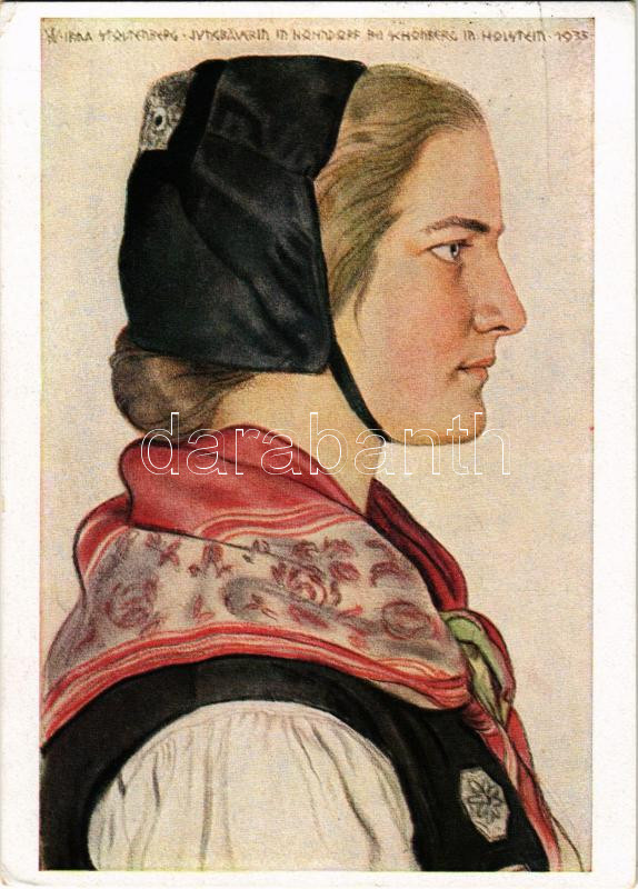 1943 Holsteinische Bauerntochter. Deutscher Blutadel in aller Welt / WWII German NS (nazi) propaganda art postcard, swastika. s: W. Willrich (EK)