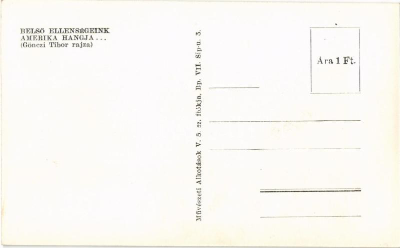 Belső ellenségeink. Amerika hangja... Művészeti Alkotások / Hungarian anti-American propaganda satire, caricature s: Gönczi Tibor