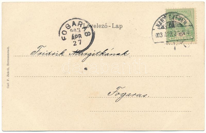 1903 Nagyszeben, Hermannstadt, Sibiu; Várlépcső. Carl F. Jickeli kiadá... https://www.darabanth.com/de/515-Auktion-Philatelie-Postkarten-Numismatik-Kunstwerke-Bucher-Schreibwaren-Schmuck/518.0/Ansichtskarten/Siebenburgen~889/1903-Nagyszeben-Hermannstadt-Sibiu-Varlepcso-Carl-F-Jickeli-kiadasa-szecesszios-viragos~II3488374