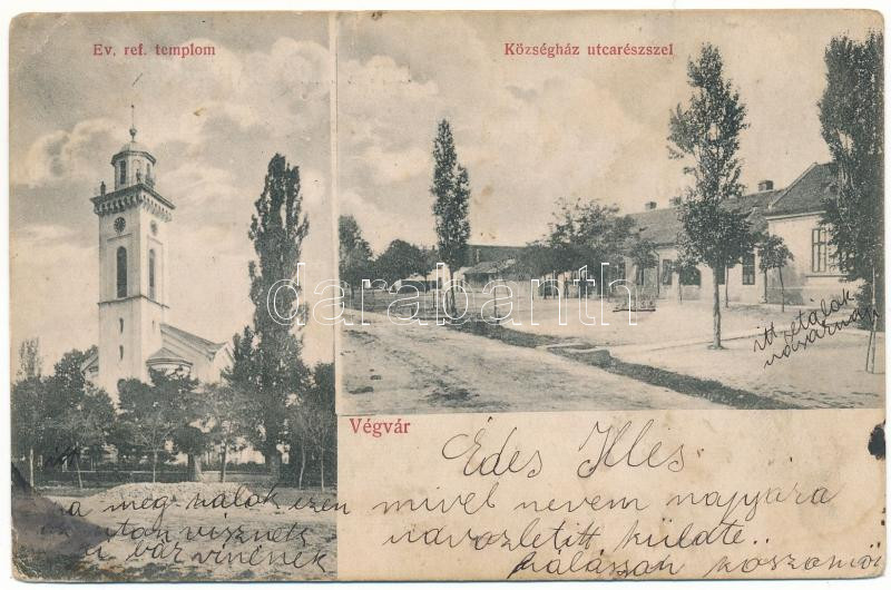 1912 Végvár, Tormac; Református templom, községház utcarésszel / Calvinist church, town hall, street view (EB)