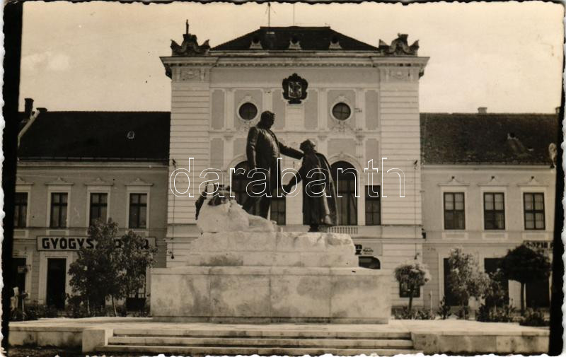 1942 Zilah, Zalau; Báró Wesselényi Miklós szobor, gyógyszertár / statue, monument, pharmacy. Foto Elite "Péter" photo