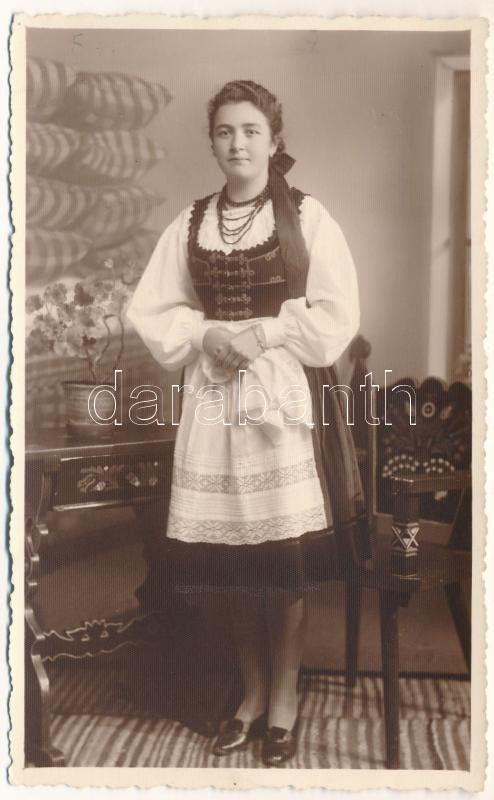 Székelyudvarhely, Odorheiu Secuiesc; hölgy népviseletben. Kováts István fényképész / lady in folk costume. photo