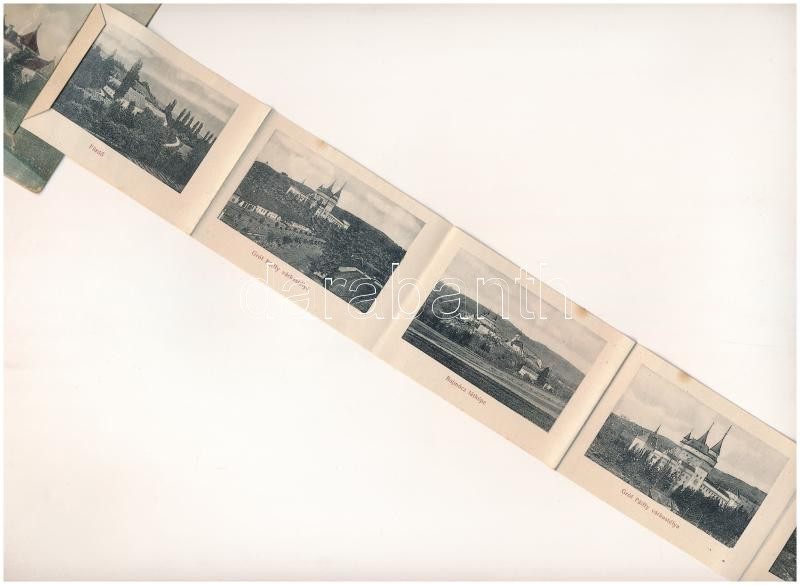 Bajmócfürdő, Bojnické kúpele (Bojnice); Gróf Pálffy várkastély a halastóval. Leporellolap 10 képpel. Gubits B. kiadása / castle with lake, leporellocard with 10 images (gyűrődések / creases)