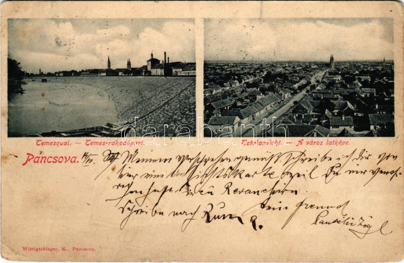 1901 Pancsova, Pancevo; Temesquai, Totalansicht. Wittigschlager K., Lichtdruck C. Ledermann jr. / Temes-rakodópart, a város látképe / quay, view (EM)