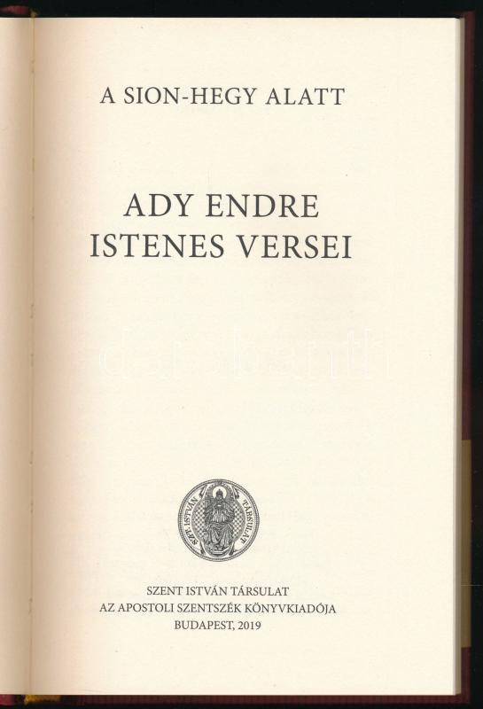 A Sion-hegy alatt. Ady Endre istenes versei. Bp., 2019, Szent István Társulat. Kiadói kartonált kötés, jó állapotban.