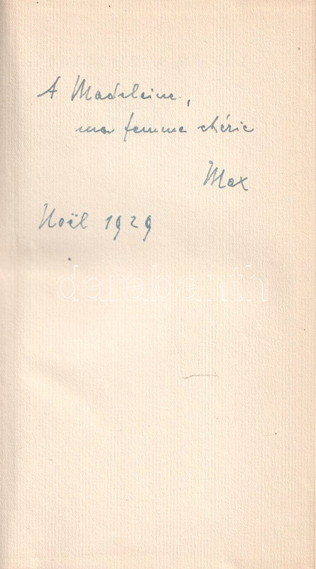 Az első előzéken régi, francia nyelvű ajándékozási bejegyzés.