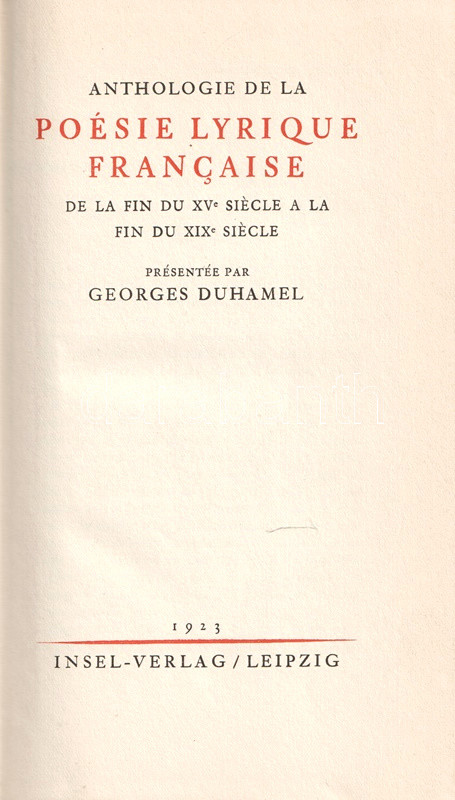Anthologie de la Poésie lyrique francaise. De la fin du XVe siecle a la fin du XIXe siecle. Présentée par Georges Duhamel.