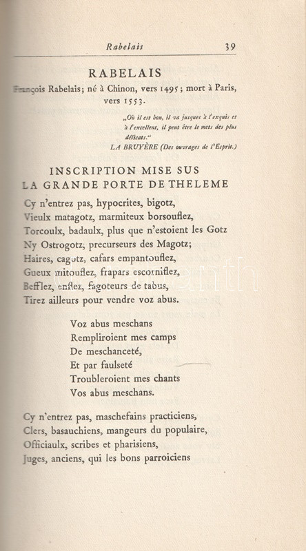 A francia költészet antológiája Villontól Baudelaire-ig.