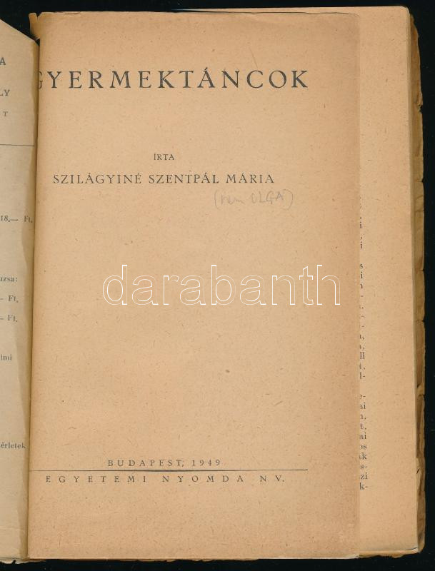 Gyermektáncok Szerk.: Sz. Szentpál Mária. Bp., 1949, Egyetemi Nyomda. 171p. Kiadói kissé sérült papírkötésben