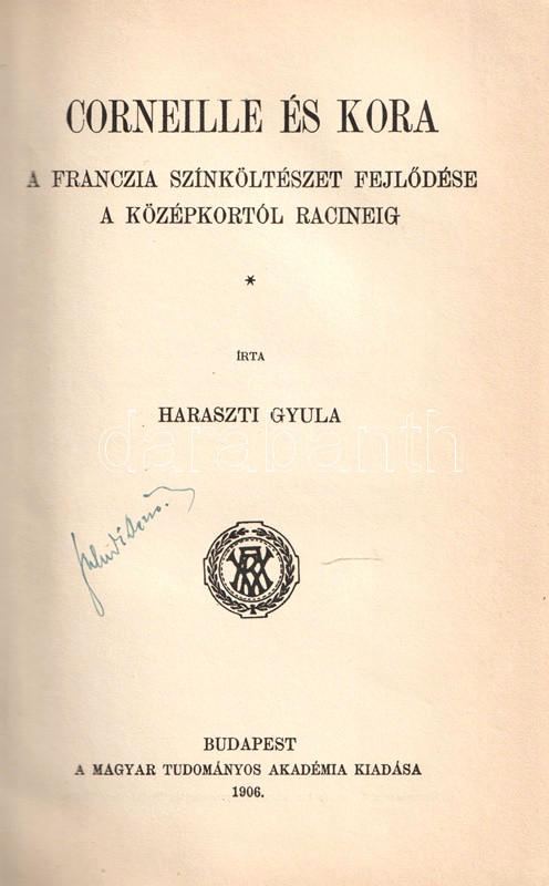 Budapest, 1906. Magyar Tudományos Akadémia (Hornyánszky Viktor ny.) 1 t. (címkép) + XII + 571 + [1] p. Egyetlen kiadás.