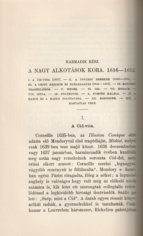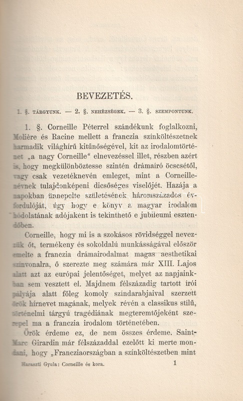 Haraszti Gyula (1858-1921) irodalomtörténész, egyetemi tanár, a francia filológia hazai megalapítója. Corneille-monográfiája a francia színháztörténet fontos dokumentuma a középkori előzményektől a francia klasszicista dráma hagyományaiig. Monográfiája fontos részét jelentik a Corneille-drámák részletes dramaturgiai elemzései, melybe a cselekményismertetés is beletartozik.
