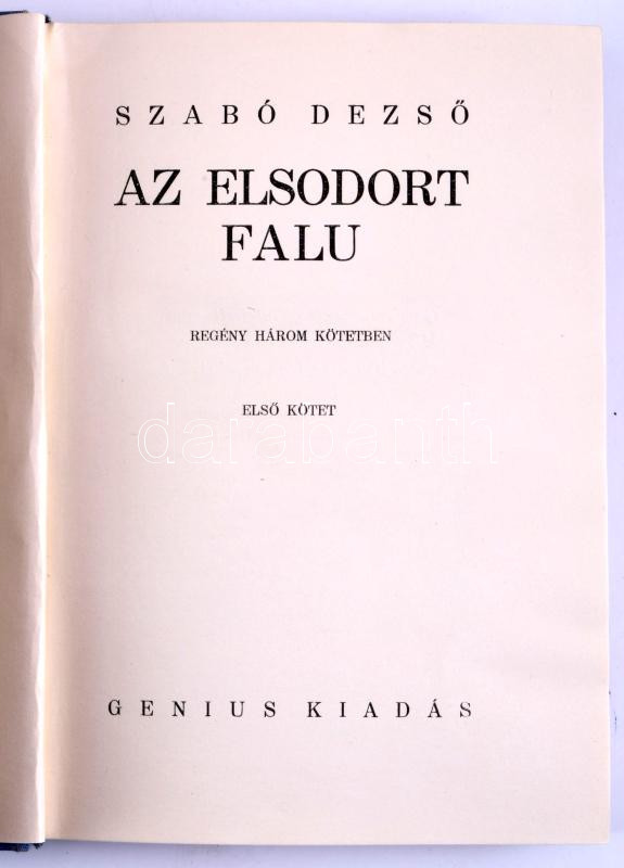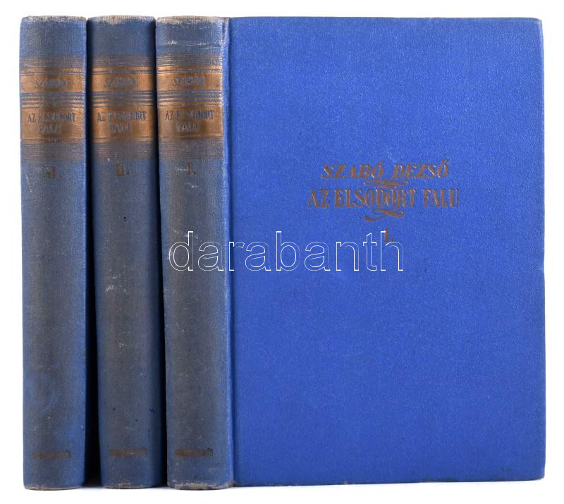 Szabó Dezső: Az elsodort falu. I-III. köt. Szabó Dezső művei. Bp., é.n. (cca 1930), Genius. Kiadói egészvászon-kötés, nagyrészt jó állapotban, kissé kopott gerinccel.