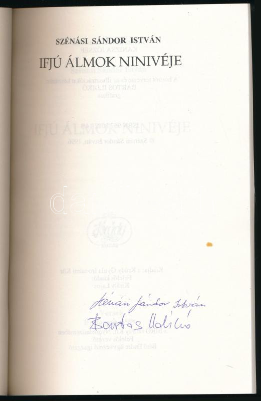 Szénási Sándor Iván: Ifjú álmok Niniviéje. Versek. A borítót tervezte és az illusztrációkat készítette: Bartos Ildikó grafikus. A szerző, Szénási Sándor Iván és a grafikus Bartos Ildikó által ALÁÍRT példány! Bp., 1996., Krúdy Gyula Irodalmi Kör. Kiadói papírkötés.