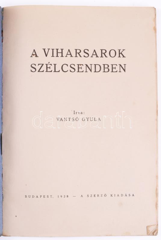 Vantsó Gyula: A viharsarok szélcsendben. Bp., 1938., Szerzői, 43 p. Kiadói papírkötés.