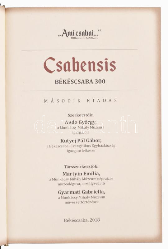 Ando György - Kutyej Pál Gábor (szerk.): Csabensis. Békéscsaba 300 - A Munkácsy Mihály Múzeum Évkönyve 5./42. - ,,Ami csabai..." múzeumi sorozat. Békéscsaba, 2018. Kiadói kartonált kötés, jó állapotban.