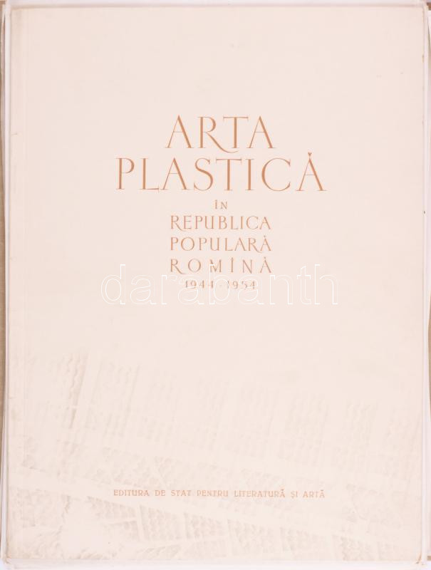 Arta Plastica in Republica Populara Romina 1944-1954. [Bukarest, 1954], Editura de Stat pentru Literatura si Arta, 16+[2] p.+ 85 (fekete-fehér és színes reprodukciók) t. Szőnyi István, Miklóssy Gábor, Vida Géza, Gy. Szabó Béla és mások munkáinak reprodukcióival. Kiadói félvászon-mappában, kissé foltos, koszos.