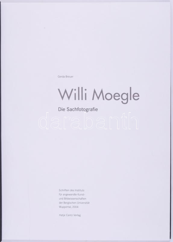 Gerda Breuer: Willi Moegle. Die Sachfotografie. [Willi Moegle. Termékfotózás.] Ostfildern, 2004., Hajte Cantz. Német nyelven. Gazdag képanyaggal illusztrált. Kiadói kartonált papírkötés.