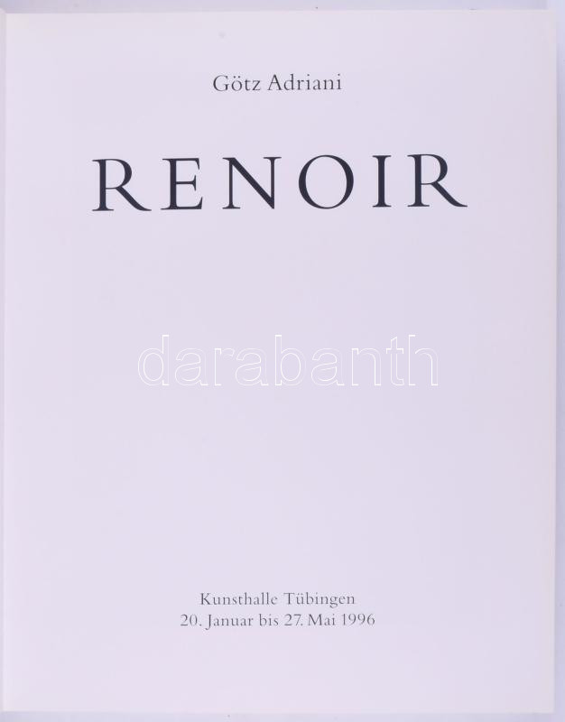 Götz Adriani: Renoir. Kunsthalle Tübingen 20. Januar bis 27. Mai 1996. Köln, 1996, DuMont. Német nyelven. Gazdag képanyaggal illusztrált. Kiadói papírkötés.