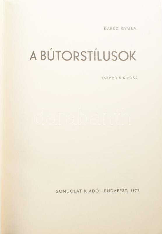 Kaesz Gyula: A bútorstílusok. Bp., 1972, Gondolat. Félvászon kötés, papír védőborítóval, kopottas állapotban.