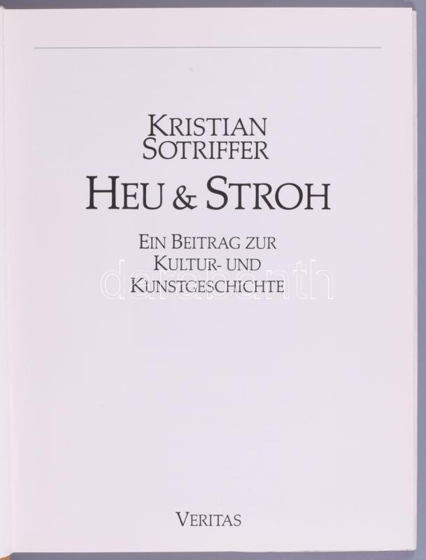 Kristian Sotriffer: Heu& Stroh. Ein Beitrag zur Kultur- und Kunstgeschichte. Linz, 1990, Veritas. Német nyelven. Gazdag képanyaggal illusztrált. Kiadói egészvászon-kötés, kiadói papír védőborítóban.
