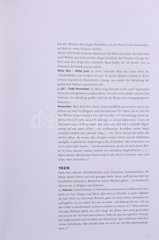 Miró. Die Farben der Poesie. (Kiállítási katalógus.) Ostfildern, 2010, Hatje Cantz. Gazdag képanyaggal illusztrálva. Német nyelven. Kiadói kartonált papírkötés, kiadói papír védőborítóban.