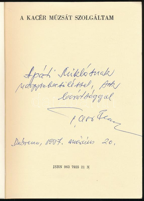 Taar Ferenc: A kacér múzsát szolgáltam. DEDIKÁLT! Debrecen, 1992. Kiadói papírkötés, kissé kopottas állapotban.
