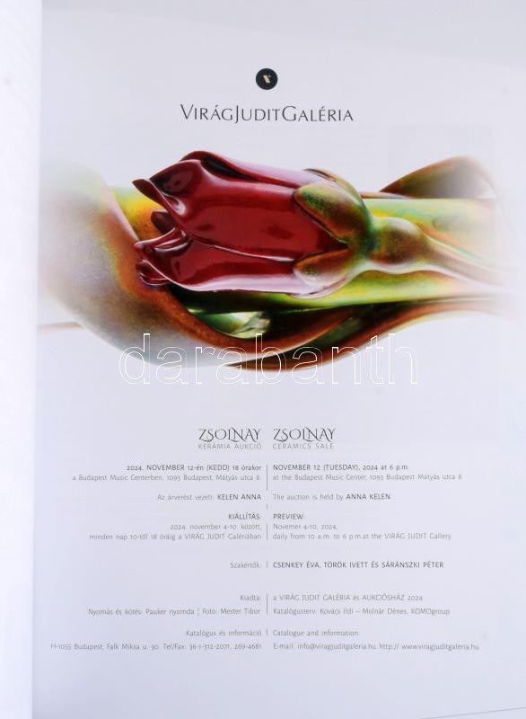 Virág Judit Galéria zsolnay kerámia aukció 2024. Benne leütési listával is! Bp., 2024., Virág Judit Galéria, 195+1 p. RendkÃvül gazdag, izgalmas, szuggesztÃv képanyaggal illusztrált. GyűjtÅ‘k számára hasznos szakkönyv. Kiadói papÃrkötés.