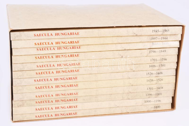 3 db - Árpád-kori legendák és intelmek. A válogatás, a bevezető tanulmány, a jegyzetek és a szöveggondozás Érszegi Géza munkája. Bp., 1983, Szépirodalmi Könyvkiadó. Kiadói egészvászon-kötés, kiadói papír védőborítóban. + Unger Mátyás-Szabolcs Ottó: Magyarország története. (Rövid áttekintés.) Bp., 1973, Gondolat. Kiadói egészvászon kötés, kiadói papír védőborítóban. + Saecula Hungariae I-XII. Válogatott írások a honfoglalás korától napjainkig 12 kötetben. Bp., 1985, Széchenyi Művészeti Központ. Kiadói papírkötés, kissé sérült kiadói papír dísztokban, ex libris-szekkel.