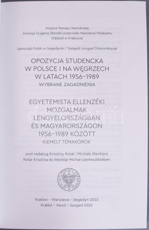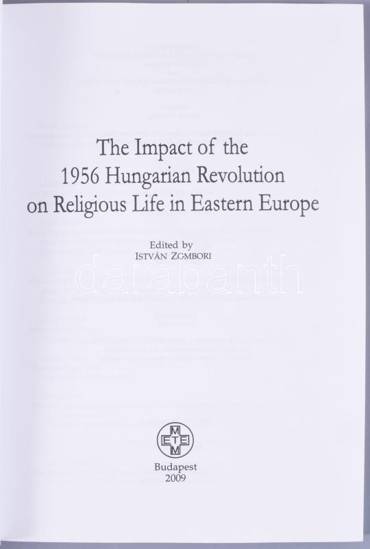 3 db könyv: Zombori István (szerk.): Az 1956-os forradalom hatása a környező országok egyházaira. Bp., 2010, Magyar EgyházTörténeti Enciklopédia Munkaközösség. Kiadói papírkötésben; Zombori István (szerk.): The Impact of the 1956 Hungarian revolution on Religious Life in Eastern Europe. Bp., 2009, Magyar EgyházTörténeti Enciklopédia Munkaközösség. Kiadói papírkötésben; Rotár Krisztina, Wenklar Michal (szerk.): Egyetemista ellenzéki mozgalmak Lengyelországban és Magyarországon 0956-1989 között (magyar-lengyel) Krakkó-Varsó-Szeged, 2022, Instytutu Pamieci Narodowej. Kiadói kartonált papírkötésben