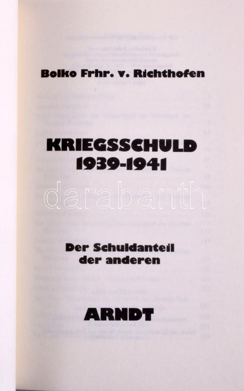 Bolko Frhr. von Richthofen: Kriegsschuld 1939-1941. Der Schuldanteil der anderen. Kiel, 1981. ARNDT. Német nyelven. Kiadói papírkötés.