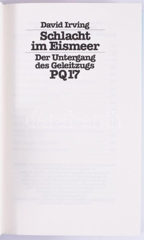 David Irving: Schlacht im Eirsmeer. Der Untergang des Geleitzugs PQ17. Hamburg, 1980, Albrecht Knaus. Német nyelven. Kiadói egészvászon-kötés, kiadói papír védőborítóban.