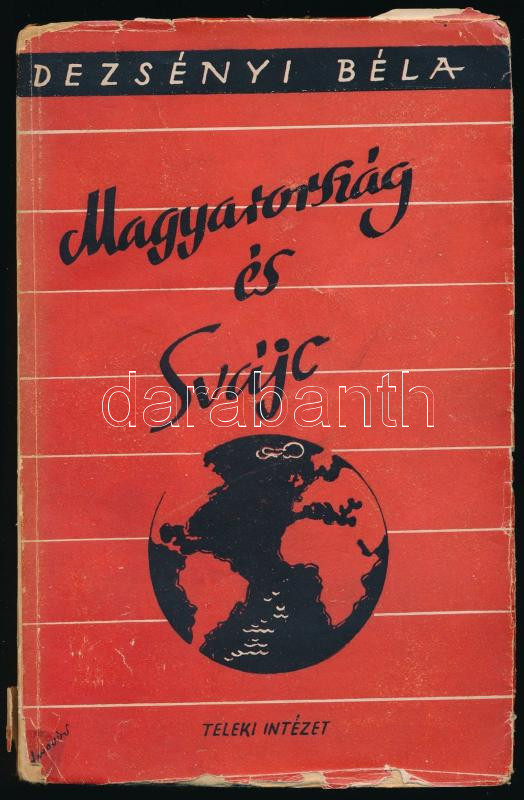 Dezsényi Béla: Magyarország és Svájc. Bp., 1946, Teleki Pál Tudományos Intézet. Kiadói papírkötés, sérült papír védőborítóval, kopottas állapotban.