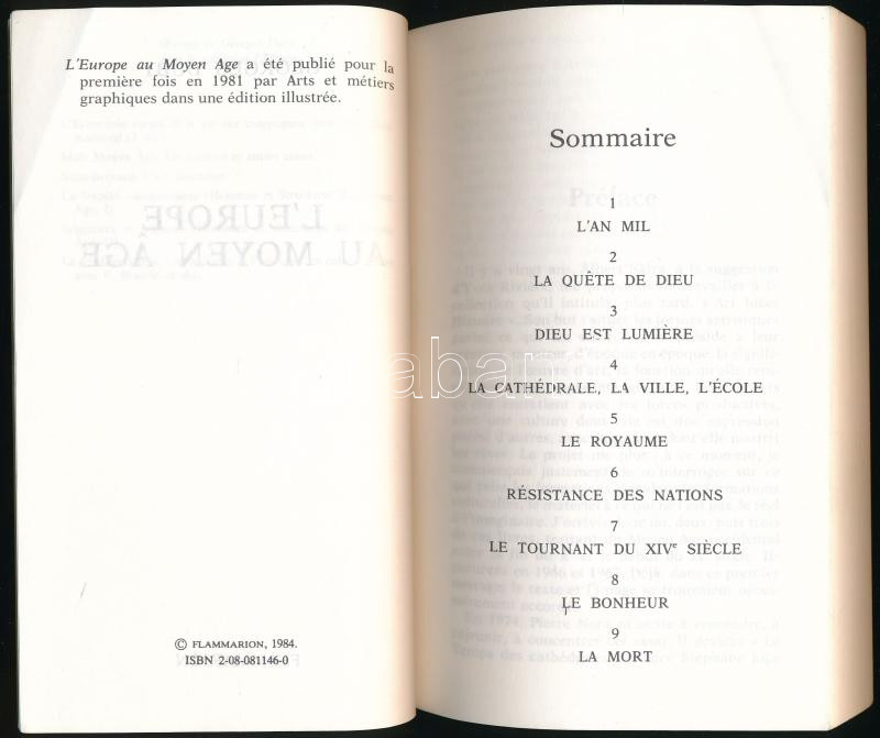 Duby, George: L'Europe au Moyen-Age. [Európa a középkorban.] 1994, Flammarion. Francia nyelven. Kiadói papírkötés, az elülső borítón gyűrődéssel.