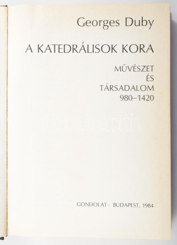 Georges Duby: A katedrálisok kora. Művészet és társadalom 980-1420. Bp., 1984. Gondolat. Kiadói vászonkötésben papír védőborítóval