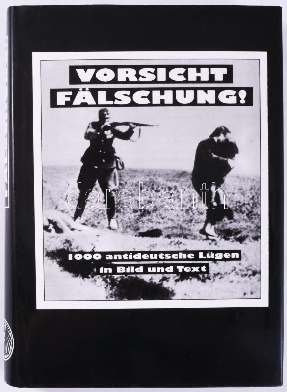 Gerhard Frey (Hrsg.): Vorsicht Fälschung. 1000 antideutsche Lügen im Bild und Text. [ Óvakodj az álhírektől. 1000 németellenes hazugság írásban és képben.] München, 1991, FZ. Német nyelven. Fekete-fehér illusztrációkkal. Kiadói egészvászon-kötés, kiadói papír védőborítóban.