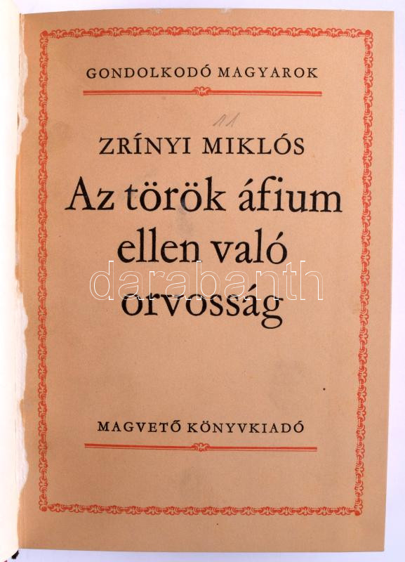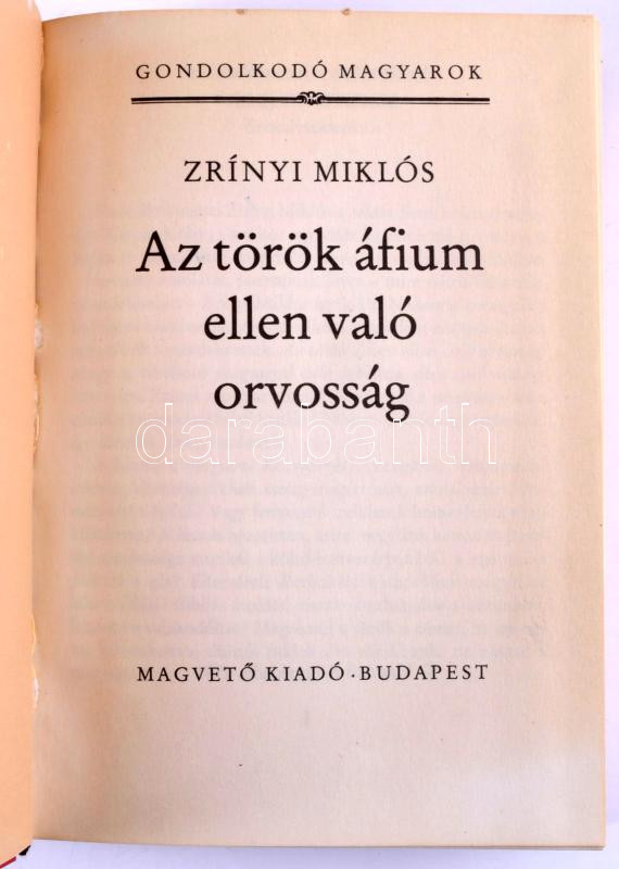 Zrínyi Miklós: Az török áfium ellen való orvosság.;