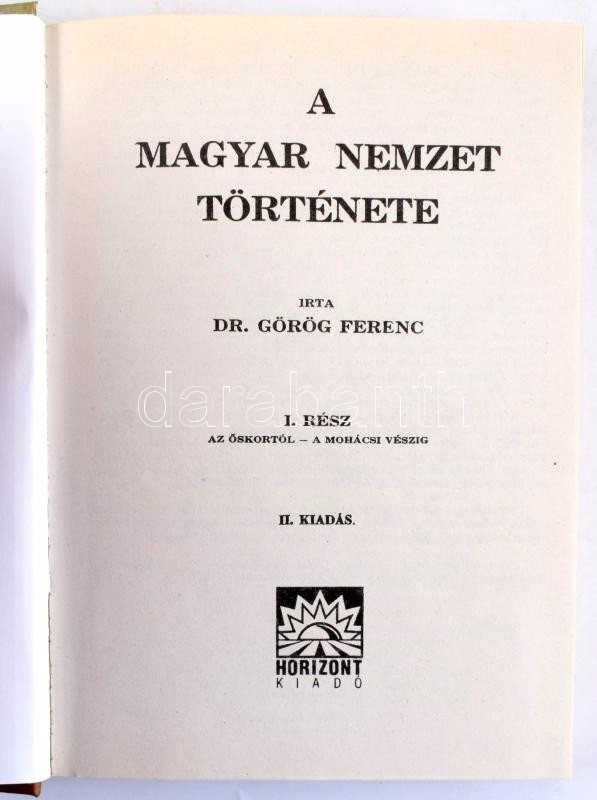 Görög Ferenc: A magyar nemzet története I. köt. Az őskortól - A mohácsi vészig. hn.,én., Horizont. II. kiadás. Kiadói kartonált papírkötés.