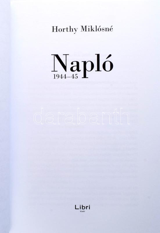 Horthy Miklósné: Napló 1944-45. Bp., 2015, Libri. Kiadói kartonált kötés, jó állapotban.